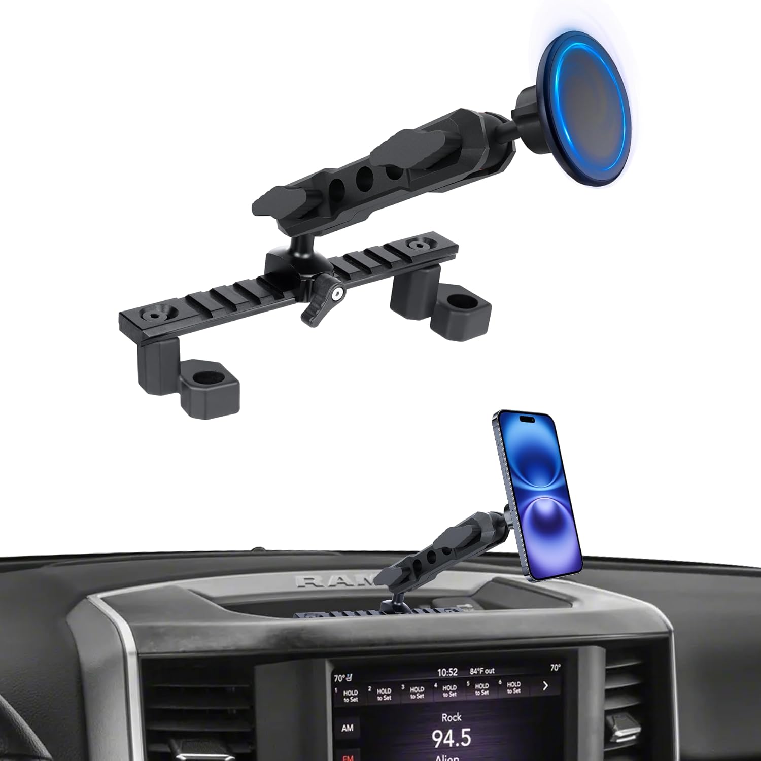 Dash Phone Mount Compatible with 2019+ RAM Truck 1500/2500/3500 & TRX Accessories (NOT fit RAM Classic Vehicle), Magsafe Phone Holder Widely Adjustable for iPhone 12-17 Series