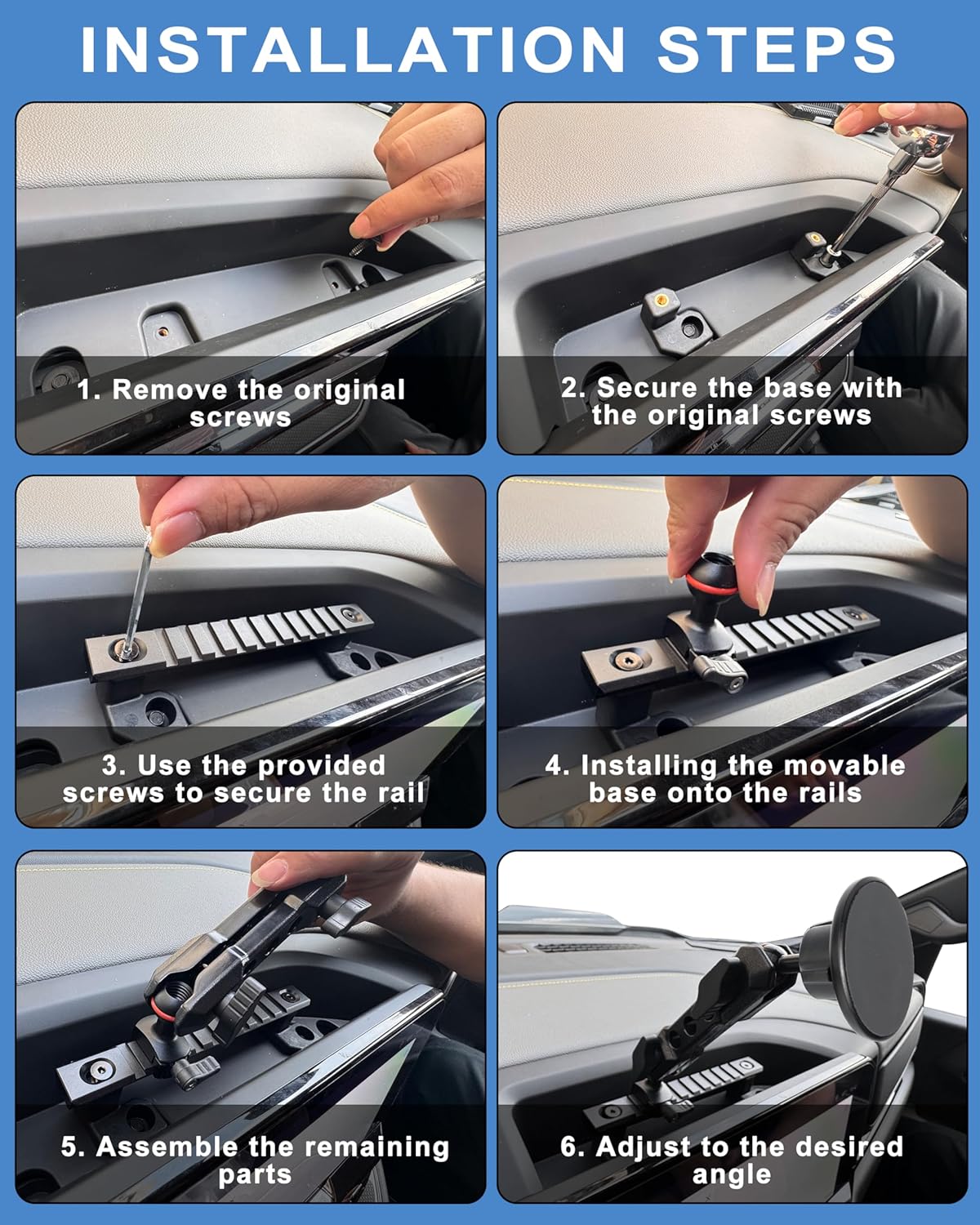 - 【Easy Screw-In Installation】Designed for a direct screw mount installation on the dashboard — no drilling or modification required, and no worry of glue marks. Provides a solid, reliable hold that won’t loosen over time.