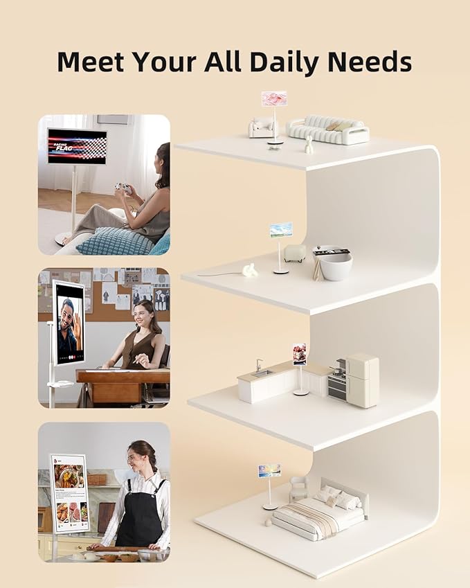 - Wireless & Wired Projection: This TV tablet on wheels offer both wired and wireless projection options, including Wi-Fi 5, Bluetooth 5.1 and Type-C port, allowing you to choose the best method and easily mirror the content on your phone, tablet, laptop, game controller, etc.