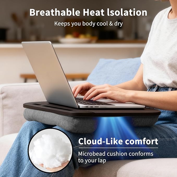 - Ergonomic Comfort Design: The cotton-padded wrist rest provides support for comfortable use while preventing your laptop from sliding off surfaces. Soft cotton padding conforms to the contours of your thighs, ensuring all-day comfort and stability whether on a sofa, bed, or chair. The dual-support cushion design balances comfort with breathability, keeping your thighs cool during extended use.