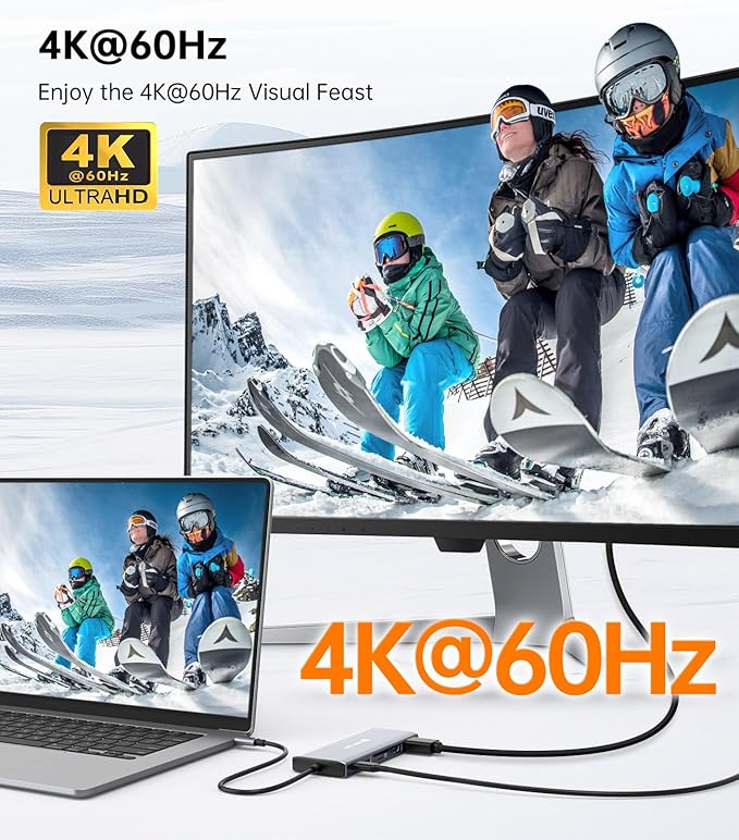 - 【100W PD Fast Charging】 The USB-C Power Delivery port supports up to 100W input (87W available for laptop charging after hub operation). Keep your laptop fully powered even when multiple devices are connected, ensuring uninterrupted productivity.