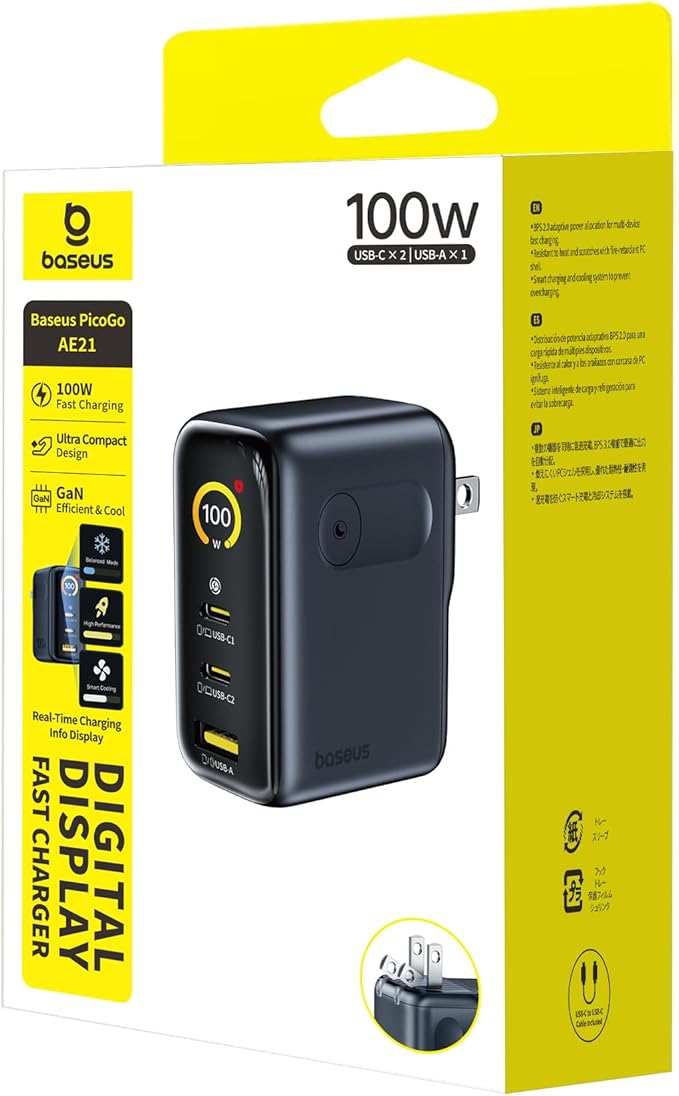 - Included Components : 100W USB C Cable, Baseus Picogo AE21 100W USB C Charger, User Manual