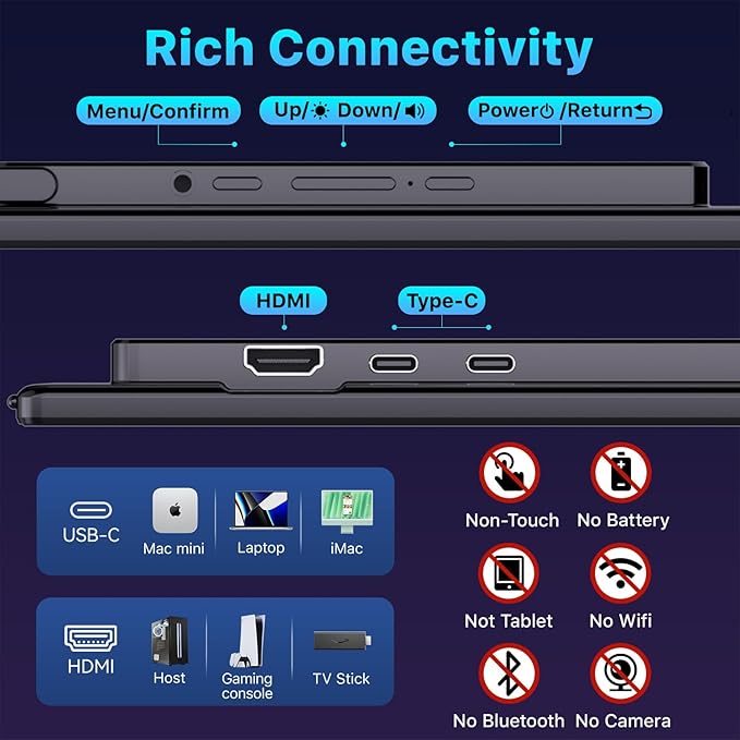 - Portable Monitor for Laptop: Featuring both USB-C and HDMI ports, this 23.8" computer monitor offers broad compatibility with most devices including MacBook, Surface, laptop, PC, Xbox, PS4/5, and more. For USB-C connection, please confirm your device has the Thunderbolt 3/4/5 or Full-featured USB-C port. Please use the original power adapter for power; otherwise, the monitor will not work