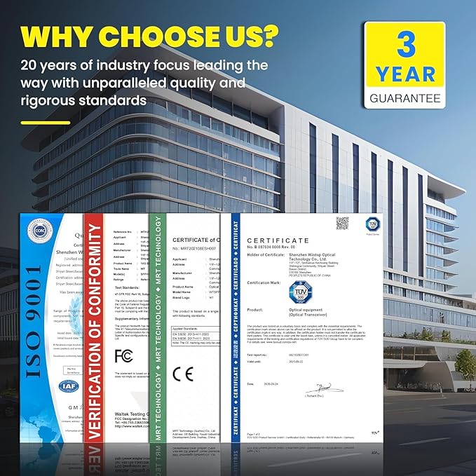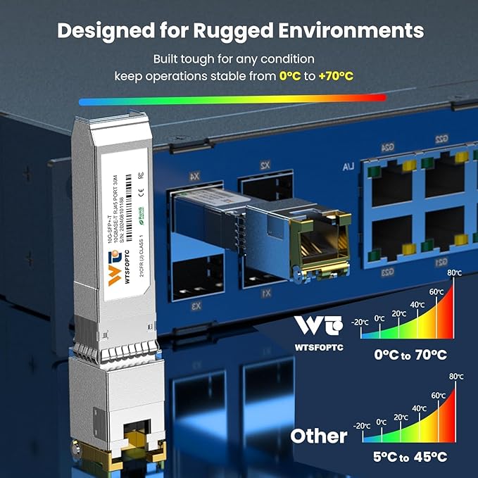 - Wide Device Compatibility – Fully compatible with Cisco SFP-10G-T-S, Ubiquiti UniFi UF-RJ45-10G, TP-Link, Mikrotik, Netgear, and other major brands, ensuring hassle-free deployment.