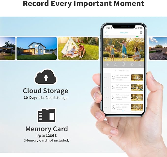 - 2-Way Talk & Flexible Memory Card/Cloud Storage : When home security cameras detects a human, you can engage in real-time communication with them. It allows you to not only monitor but also interact with visitors or potential intruders. The solar camera outdoor wireless supports Memory Card and cloud storage. You can choose to save recorded events either on an Memory Card (up to 128GB, not included) or in cloud storage (30-day trial available).