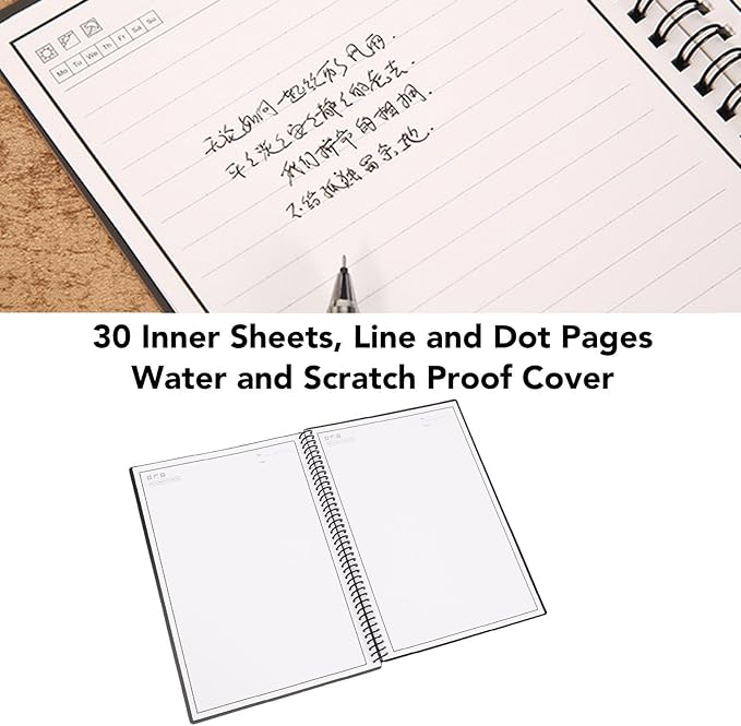 - ERASABLE AND REWRITABLE: Write notes efficiently on reusable smart notebook with the included pen, digitize easily with the APP, and store in your preferred service. After completion, just wipe clean with a towel and water, and you can start over