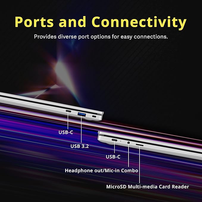 - 【Chrome OS】Enhance your work potential with the flexible and powerful Windows OS.【Dimensions & Weight】12.88 x 8.88 x 0.63, 3.2 lbs.【Ports】1 x USB-A 3.2, 2 x USB-C, 1 x Headphone Jack. Wi-Fi 6.【Bonus Docking Station Set】1x 7-in-1 Docking Station with 128GB Storage, 1x 32GB MicroSD Card with Adapter, 1x Type-C Data Cable, 1x 3-in-1 Charging Cable, 1x Suede Cleaning Cloth.