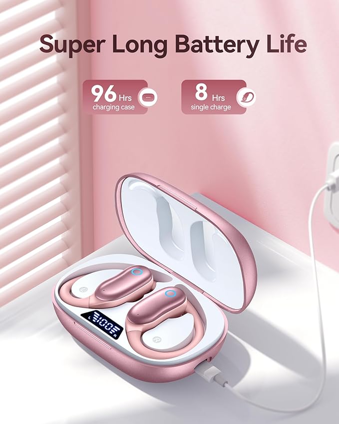 - 【Huge Battery Life with Power Display Charging Case】: On single fully charge, our Bluetooth earbuds last up to 8 hours. With portable charging case, it provides up to 96 hrs of continuous playback, ensuring that your music never has to end. The dual led display easily monitors the real-time battery levels of both the case and wireless earbuds on the go. Additionally, the Type-C fast charging capability makes recharging the sport headphones a breeze and let you dive back into your groove.