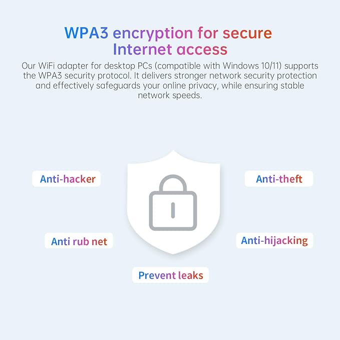 - Enterprise-grade Protection Meets Exceptional Performance: Advanced WPA3 encryption creates an invisible shield to protect your sensitive information from threats. The high-speed USB 3.0 interface and dual high-gain antennas work in concert to deliver a consistently strong, stable, and reliable connection