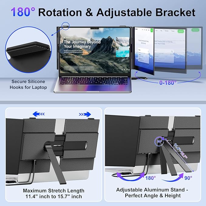 - 【Boost Productivity by Up to 200%】Transform your single laptop into a dual monitor for laptop setup in seconds. This laptop monitor extender supports Extended, Mirrored, and Portrait modes, allowing you to multitask seamlessly across screens without constant tab switching. Perfect for professionals, gamers, designers, programmers, and anyone who wants to work smarter and faster.